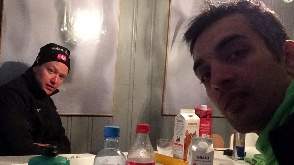 Etter rådføring med ekspertisen på Norges Idrettshøyskole ved José Areta la vi oss på seriøs karbo-loading; 12-14 gram med karbs per kilo kroppsvekt per dag ble inntatt de to dagene i forveien. I praksis betyr det at vi trøkket i oss 4-5.000 kalorier, og det er mer utfordrende enn det høres ut for. For å nå kalorimålet måtte vi altså spise mer så fort metthetsfølelse avtok. Det er spesielt å avslutte en lunsj på åtte blingser med skinke og ost med tre Snickers-is. Å si at vi var matleie fredag 13. mai er en underdrivelse.