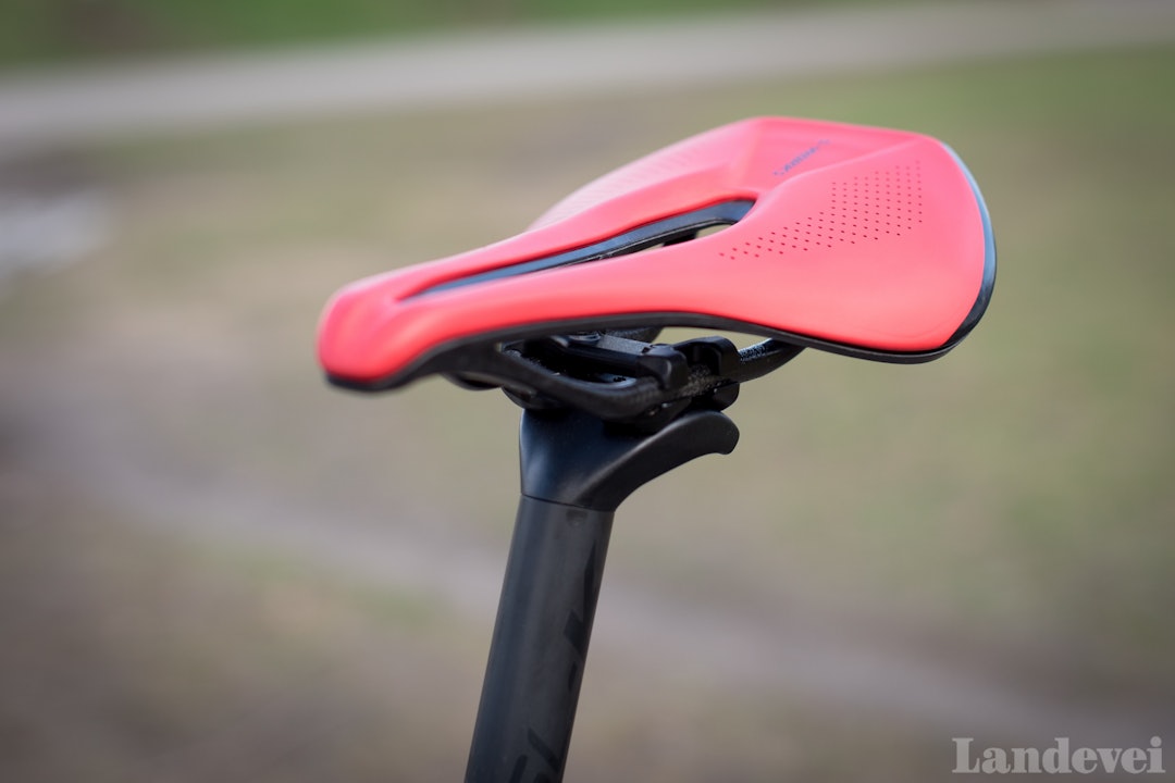 Legg også merke til at setet er kortere. Specialized har kuttet av nesen, da de mener den ikke trengs. Så langt er jeg enig, når en graver dypt i bukken har jeg fortsatt sitteknutene på setet, mens skrukket nærmest henger i løse luften.