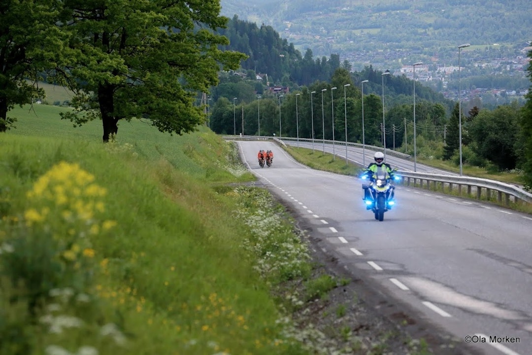 STUSSELIG: Team Kjekkas var som første lag ut de eneste som fikk ledemotorsykkel. Dette er en merkelig praksis fra Oslo-politiet. Foto: Ola Morken.