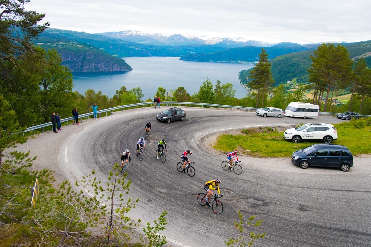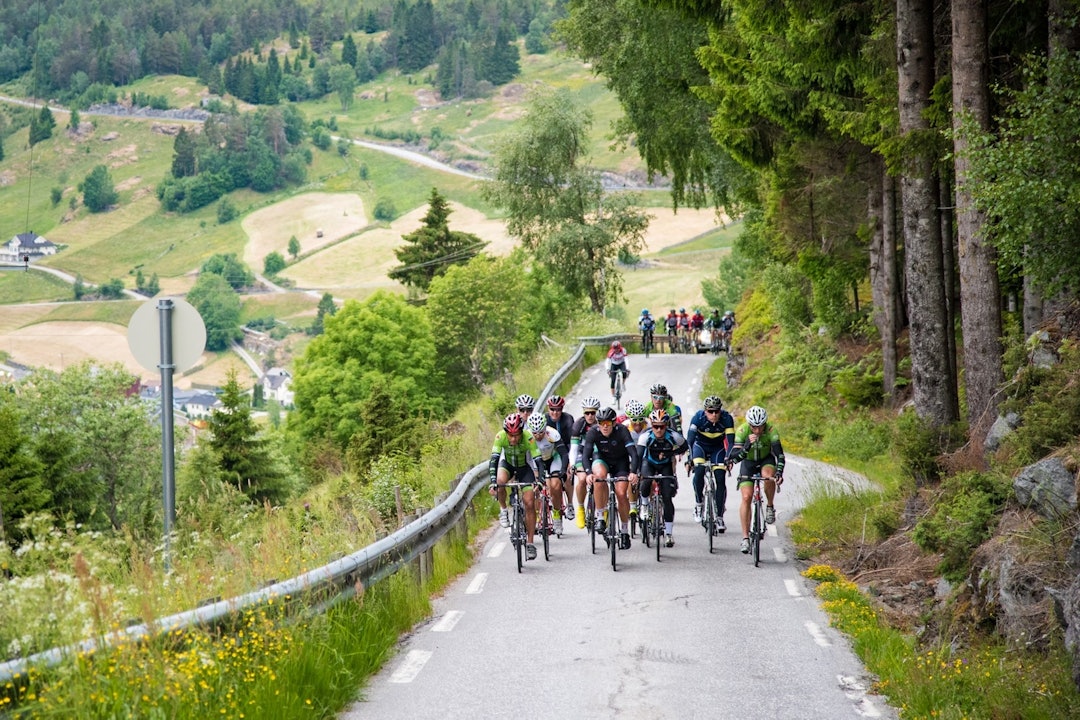 Foran i min gruppe som teller cirka 25 mann går det i jevnt høyt tempo i rullen inn mot Utvikfjellet. Jeg vet sånn noenlunde hva som venter meg med 8,8 km klatring og 7% i snitt. Jeg bestemmer meg i bunn av bakken for å ikke være defensiv i feltet, så jeg setter opp farten fra start sammen med fire karer. Vi får raskt en luke til feltet, men halvveis oppe i bakken kommer det opp fem til. Jeg begynner selv å slite med negative tanker og må gi 30-40 meter til de andre. Banner inni meg, og klarer heldigvis å snu trenden.