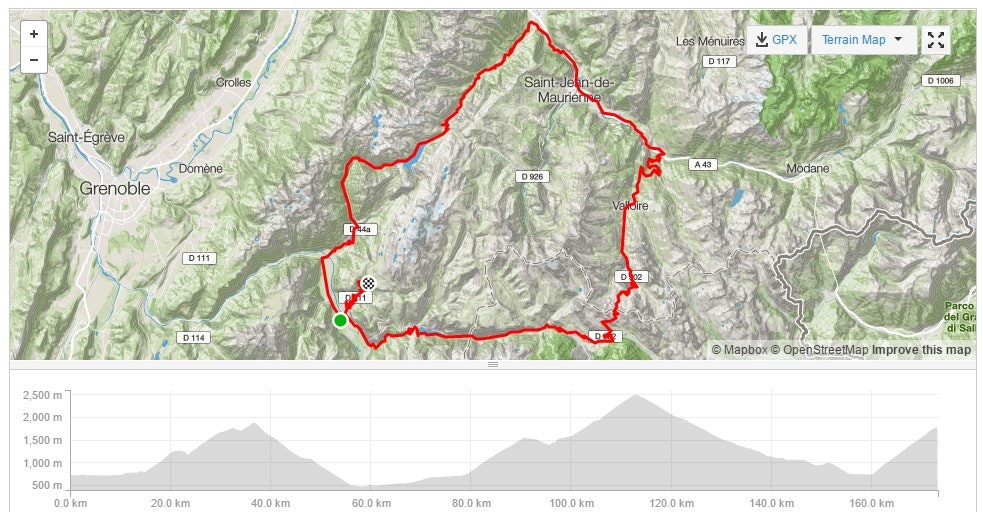 Med start i Bourg d’Oisans går løypa over Col du Glandon, Col du Telegraph og Col du Galibier, før det hele avsluttes på Alpe d’Huez - da har deltakerne tråkket 174 kilometer og klatret 5.000 høydemeter.