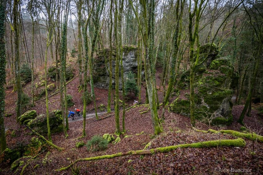 Likevel gir det mer mening enn noen gang. Helt alene, mellom snødekte vinranker, med gjørme til anklene, uten bremser er det igjen tid for å hoppe på sykkelen. Snart skal jeg ned fra 900 til 400 meter. 300 høydemeter lenger nede er solen i ferd med å bryte opp tåken, da kan jeg endelig se middelalderborger og like gamle bondegårder i åssidene rundt meg.»