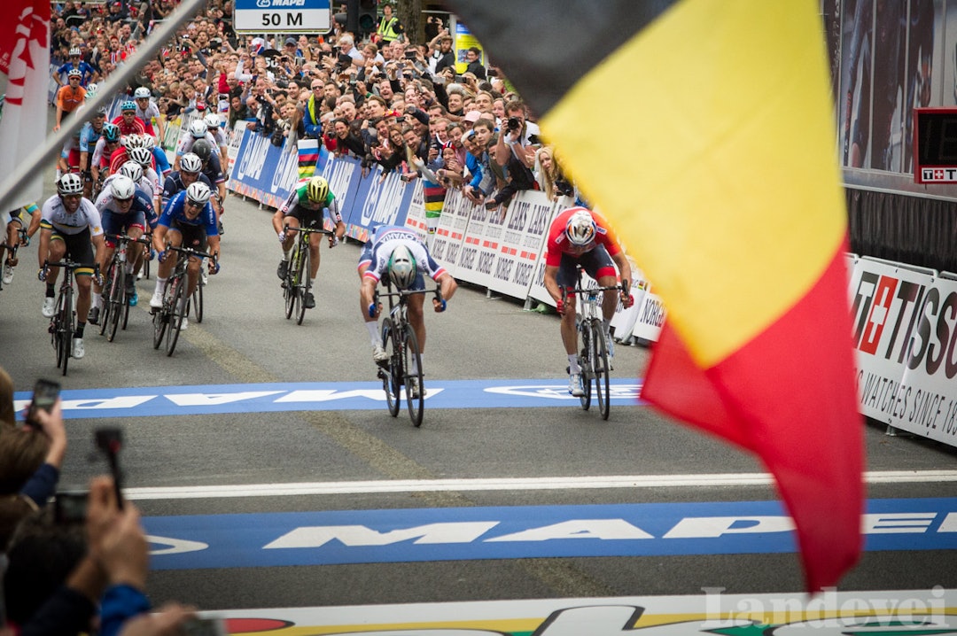 Kristoff var svært offensiv mot slutten og satt topp fem de siste to kilometerne. Ut av siste sving og inn på oppløpet på Festplassen gikk Kristoff til. På hjulet satt ringereven Peter Sagan, sulten på nok en VM-triumf.
