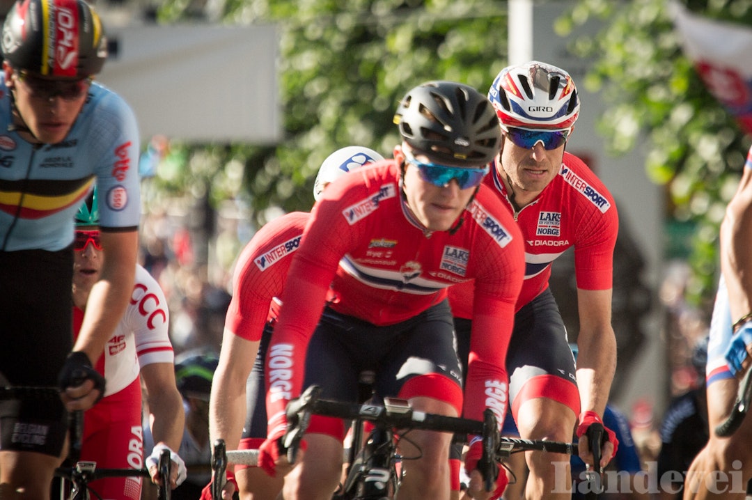 Nå begynte et langt mer taktisk ritt. Norge var på offensiven og fikk Odd Christian Eiking avgårde i et åttemannsbrudd, bestående av meiritterte ryttere som Lars Boom, Tim Wellens og Jarlinson Pantano.