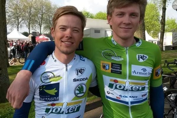 HERJET: Team Joker herjet i Tour de Bretagne, og tok to etappeseiere ved Adrian Aas Stien (venstre) og Daniel Hoelgaard. Foto: Team Joker