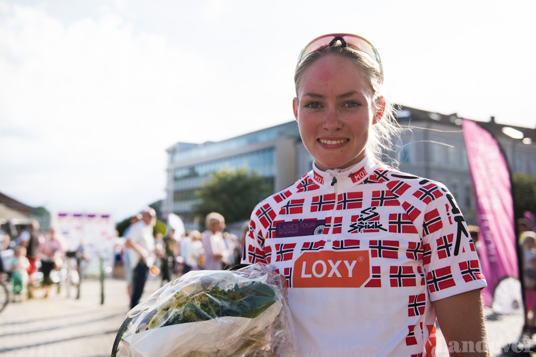 Norgesmester Miriam Bjørnsrud fikk også en stri tørn på dagens etappe, og ble kjørt av allerede i den første stigningen. Hun måtte til slutt bryte rittet.