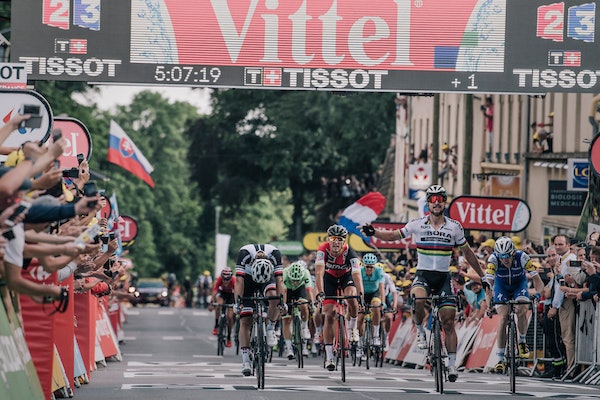 Peter Sagan manøvrerte seg derimot rolig opp på hjulet til Richie Porte med 300 meter igjen. I spurten var den regjerende verdensmesteren såpass overlegen at han kunne tillate seg et lite uhell med pedalen og likevel ha full kontroll.