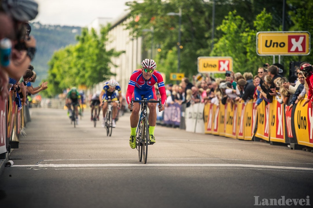 Dermed ble det Herman Dahl fra Team Sparebanken Sør som spurtet inn til NM-gull i kveldens gateritt på Gjøvik. Kristiansand-gutten spurtslo Håvard Blikra fra Coop-Østerhus og Syver Wærsted fra Grenland SK etter 55 intense minutter. De var en del av en 16-mannsgruppe som skilte seg ut tidlig i rittet.