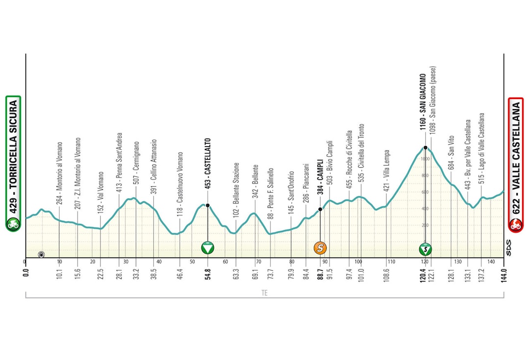 5. etappe, 8. mars: Torricella Sicura - Valle Castellana, 144 kilometer