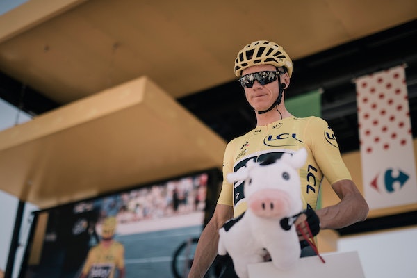 GUL MANN: Chris Froome hadde litt trøbbel underveis på etappen, men er fortsatt å finne i gul trøye. Foto: Kristof Ramon
