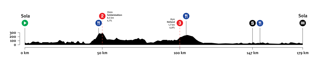 1. etappe, torsdag 29. mai: Sola - Sola, 182,2 kilometer