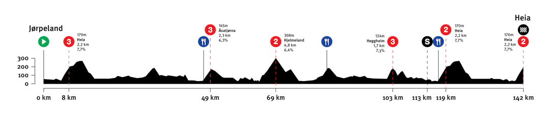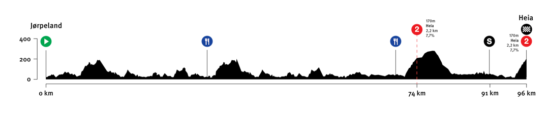Tredje etappe for menn og den første for kvinnene går fra Jørpeland til Heia. Begge får en tøff bakkeavslutning på 2,2 kilometer med 7,7 prosent stigning i snitt. For mennene blir dette trolig den mest krevende etappen med seks kategoriserte stigninger.