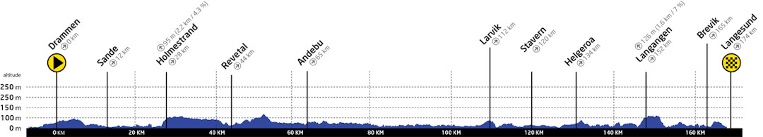 1. etappe, Drammen – Langesund, 174 km: