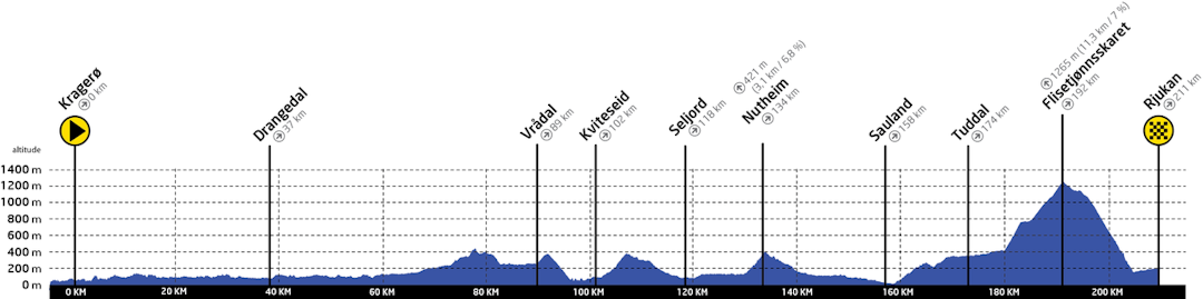 2. etappe, Kragerø – Rjukan, 211 kilometer