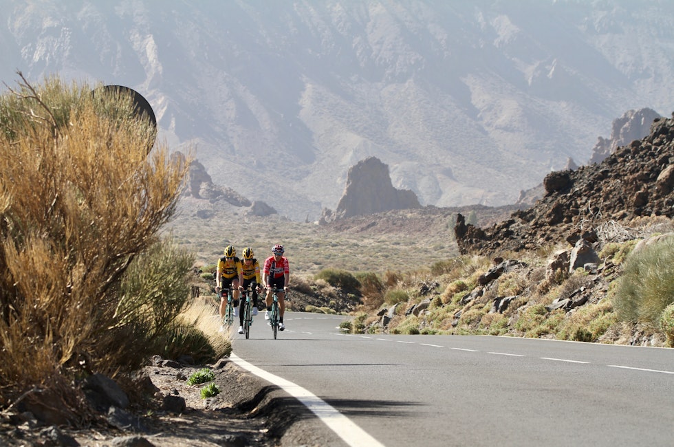 Her er det et goldt, tørt landskap som er formet av lavaens herjinger og utbrudd tilbake i tid. Det forrige skjedde for øvrig i 1909. Her kappes WorldTour-lagene om å sjekke inn på Hotel Parador de Cañadas del Teide ved foten av vulkanen på 2100 meter.