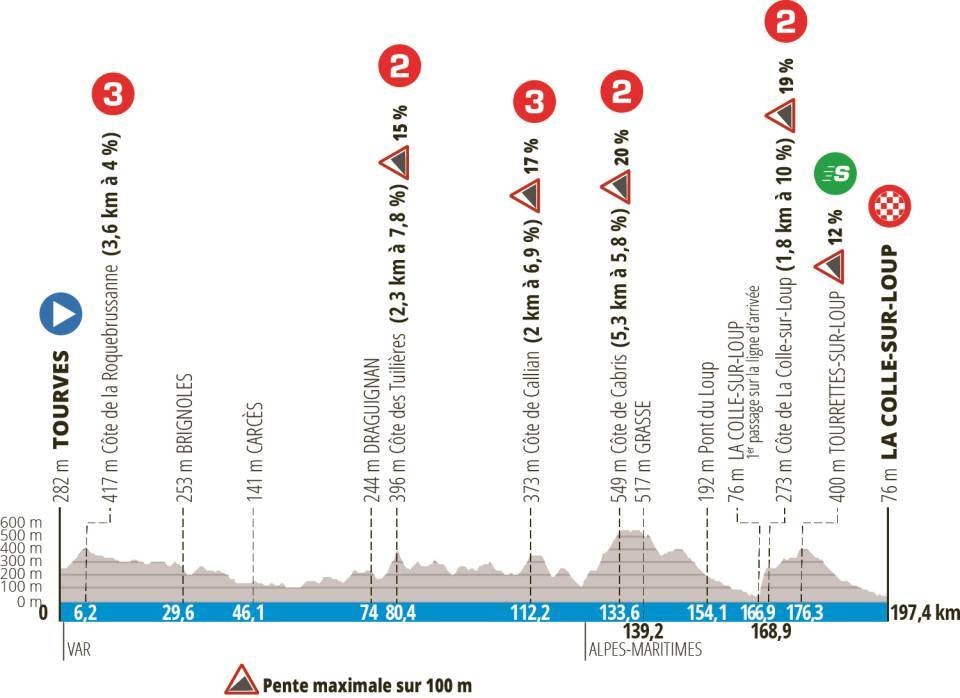 6. etappe, 10. mars: Tourves - La Colle-sur-Loup, 197,4 kilometer