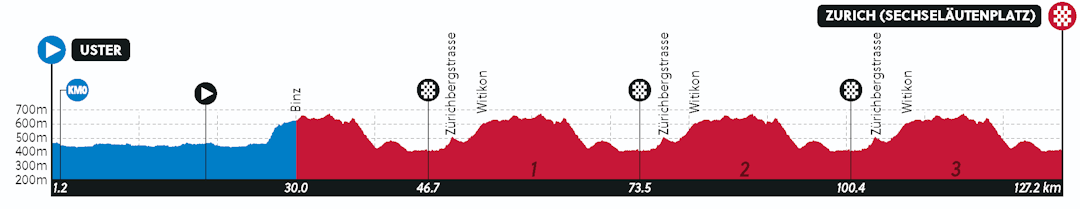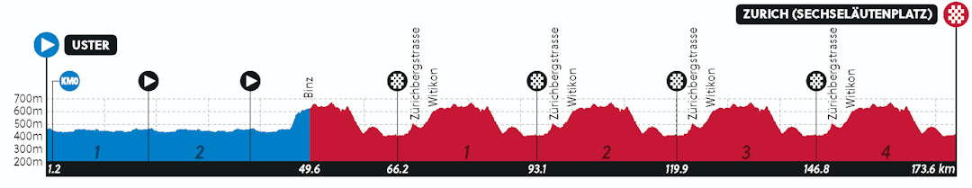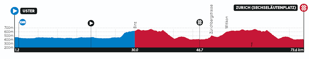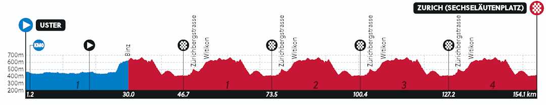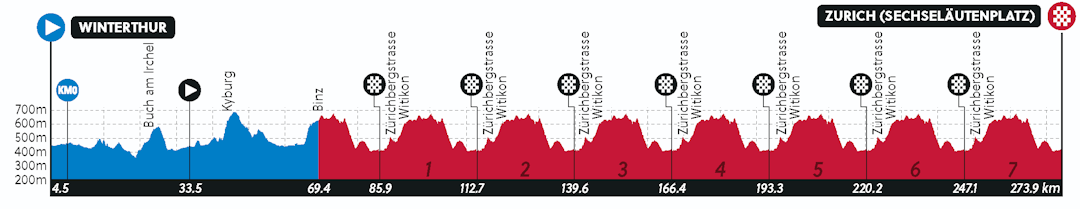 I en løype teller hele 327 høydemeter blir kjørestyrke avgjørende for resultatet. Fra starten i Gossau stiger det slakt oppover til løypas toppunkt, i åssiden over Zürichssjøen. Etter nedkjørselen sykler langs sjøkanten på østsiden av sjøen, hele veien opp til mål i sentrum av Zürich. De siste 13 kilometerne er helt flate og mer eller mindre rett frem, så her gjelder det å ha nok igjen i tanken til å holde farten høy.