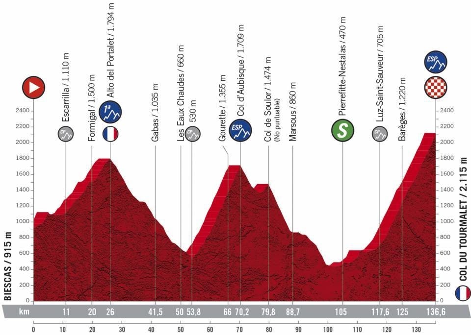 - Årets kongeetappe kommer allerede på rittets sjette dag! Ikke bare skal rytterne fullføre på legendariske Col du Tourmalet, de skal også forsere Alto del Portalet og Col de Aubisque – alt i løpet av skarve 136 kilometer. Etappens beskjedne distanse gjør at vi kan få se sammenlagtfavoritter med gode bein prøve seg svært tidlig på etappen. Dette er en etappe hvor alt kan skje, og vi vil få en god indikasjon på hvem som faktisk har beina til å vinne Vueltaen. Med andre ord – dette er dagen du simpelthen ikke vil gå glipp av!