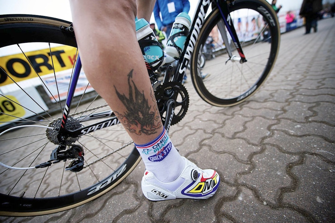 Sylvain Chavanel ser unektelig ung og uskyldig ut. Bak ansiktet som har svigermors drøm nærmest skrevet i pannen, finner vi en av feltets mest aggressive syklister. Det er med andre ord mye tolkbar symbolikk i den ildsprutende dragen han tar tatovert nede på høyre legg, elegant plassert rett over sokkekanten.