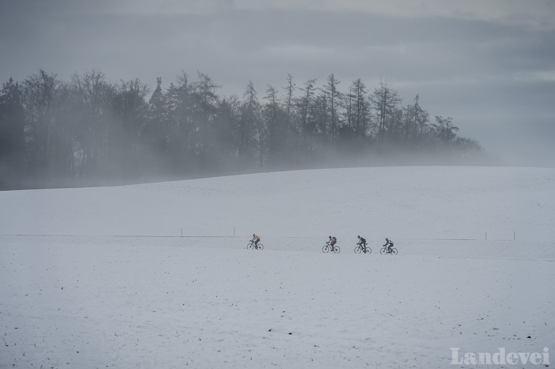 Sammen kjemper vi en absurd kamp mot gjørme og snø, i et desto mer absurd sykkelkrossritt. I det vi når asfalt igjen er vi trygge, vi slapp akkurat unna kuleregnet! Jeg sitter alene med folk fra Tyskland, Østerrike, Sveits og en italiener. Jeg er en del av en lagkonkurranse. Team Landevei er et tomannslag, og etter gårsdagens prolog ligger vi på andreplass.