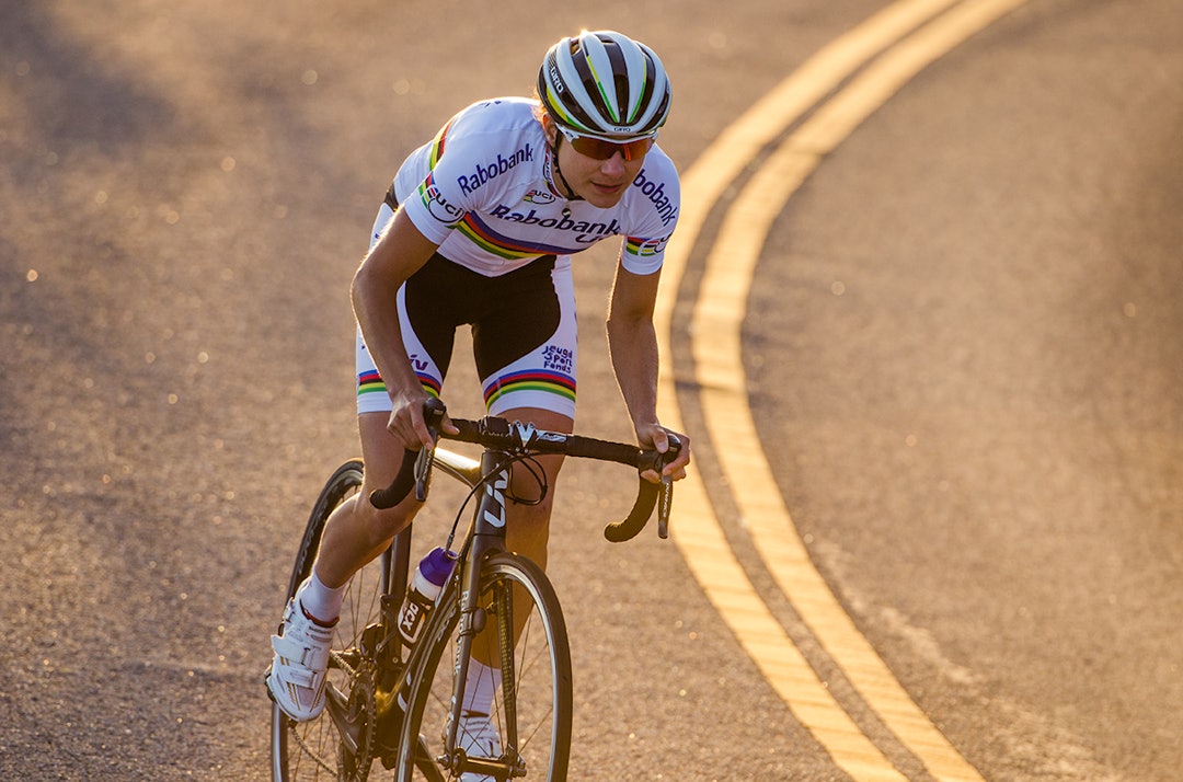 LEKKER: Hjelmen, altså. Giro Synthe skal være superaero, og i tillegg til Marianne Vos brukes den av vår egen Alexander Kristoff. Foto: Cor Vos.