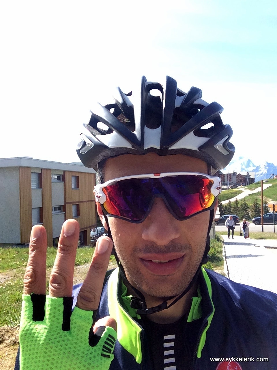 “Overmot står for fall”, heter det. Nå som forholdene tilsier kort-kort bekledning og himmelen er skyfri, klarer jeg ikke å la være å gønne på allerede fra første sving. Så fin og frisk som jeg føler meg, er altfor fristende å hele tiden prøve å ta igjen den neste ryggen foran meg. Og slik går det til omtrent halvveis, når jeg ser at jeg har tråkket for høy watt og varmen tar tak i meg. Jeg tåler varme som en isbjørn, og begynner å bli stresset over at jeg bare er halvveis. De mange hyggelige tilropene fra nederlenderne er likevel til stor hjelp, og jeg belønner meg selv med noen slurker vann rett før hver sving. Dermed kommer jeg nok en gang til Alpe d’Huez på en høyst respektabel tid, den nest beste hittil.