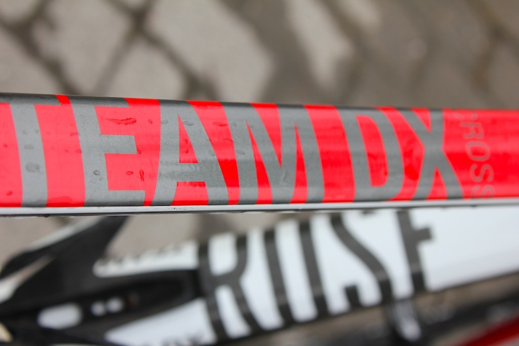 Aluminiumsrammen oser det kvalitet av, og den er spekket med detaljer. Her får man alt man ønsker av praktiske løsninger. For eksempel gjennomgående aksling, direktemontert kalipper-feste, innvendig vaierføring og fester for skjermer. To flaskeholder-fester er det også, noe man ikke kan ta for gitt på en sykkelkross. Man har tross alt ikke flaske på sykkelen i sykkelkrosskonkurranser.