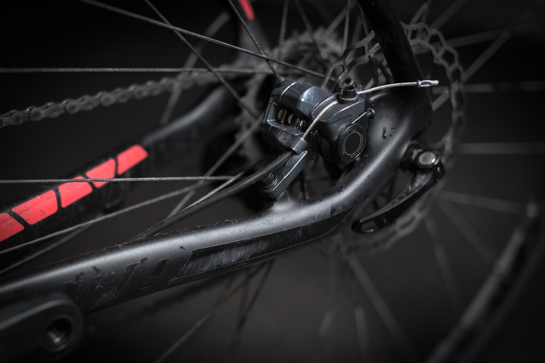 FULL STOPP: Bremsene har god modulasjon, men skivene blir fort varme i lange utforkjøringer. Knekken i baktriangelet er formet slik at noen syklister vil slå borti.